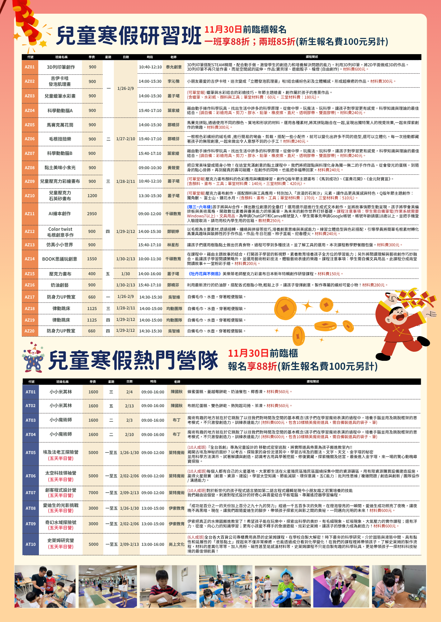 💰寒假研習班$900~$2950元