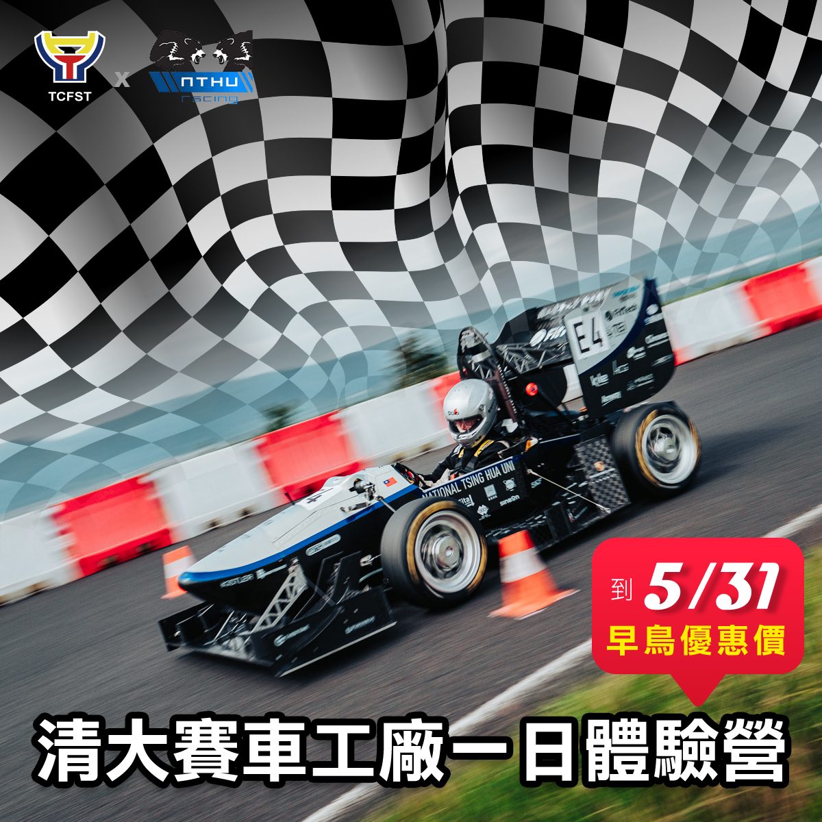 你知道,清大有支學生團隊在學生方程式賽事上躋身國際,成績非凡嗎?在團隊成員們不斷努力下,清大賽車工廠自創立以來研發目標由燃油車、電動車,再到無人自駕賽車,一路不停挑戰極限,凝聚出令人刮目相看的強勁實力。清大動力機械工程學系將部分教學與賽車實作結合,「賽車實作專題」納入課程後,將賽車應用融入電路電子、流體力學等專業課程,讓學生在做中學,學中做!這次的清大賽車工廠一日體驗營也將一揭賽車團隊的神祕面紗,讓高中生一窺賽車團隊進行研發的面貌,如果你也對賽車感到好奇,即刻點擊連結報名,千萬不要錯過!
