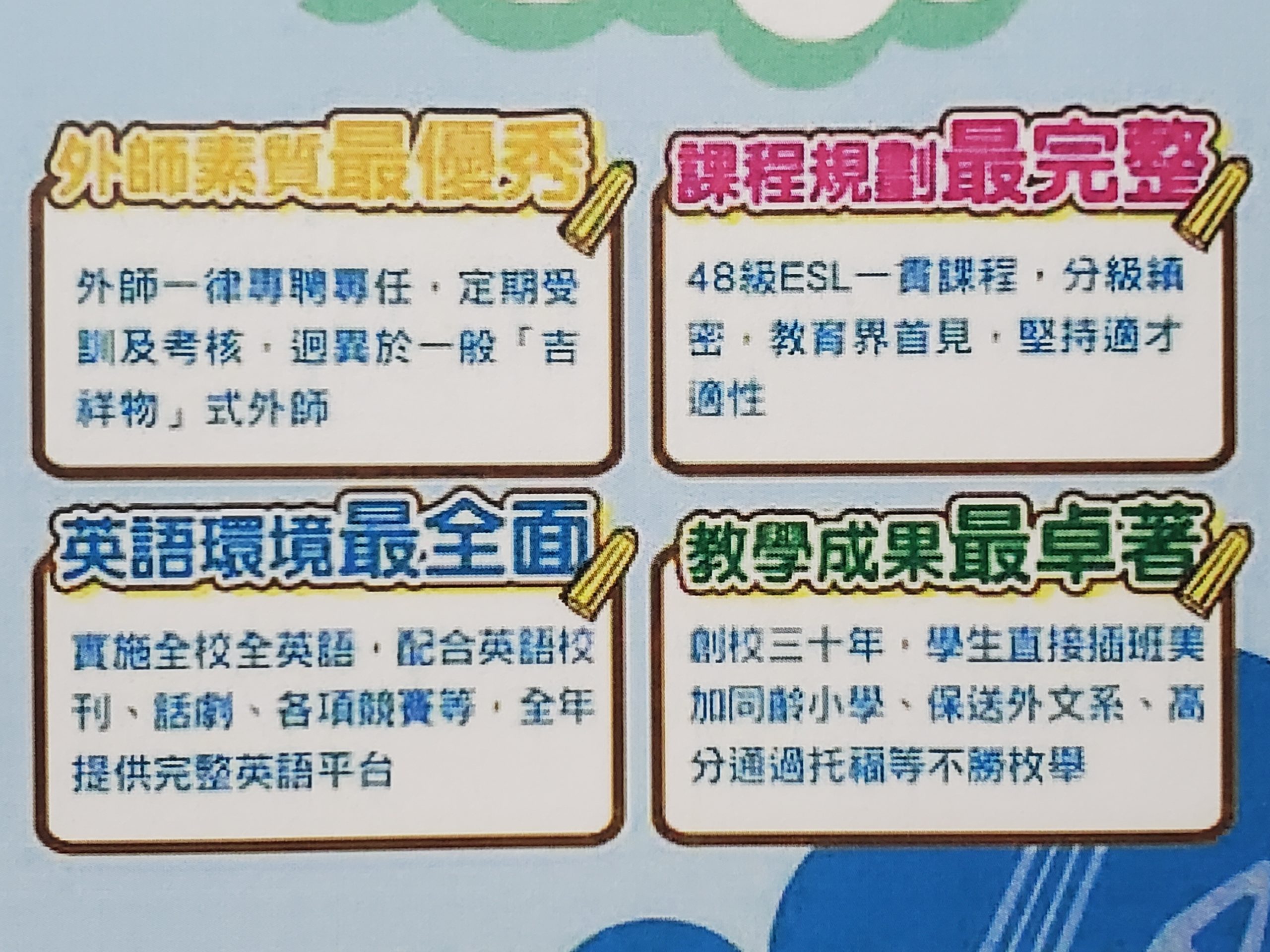 | 開課中班別 國中/高中考前衝刺班,國中國文班,國中數學班,國中社會班,國中自然(理化/生物/地球科學)班,國中英文班,國中課輔班,才藝班 |