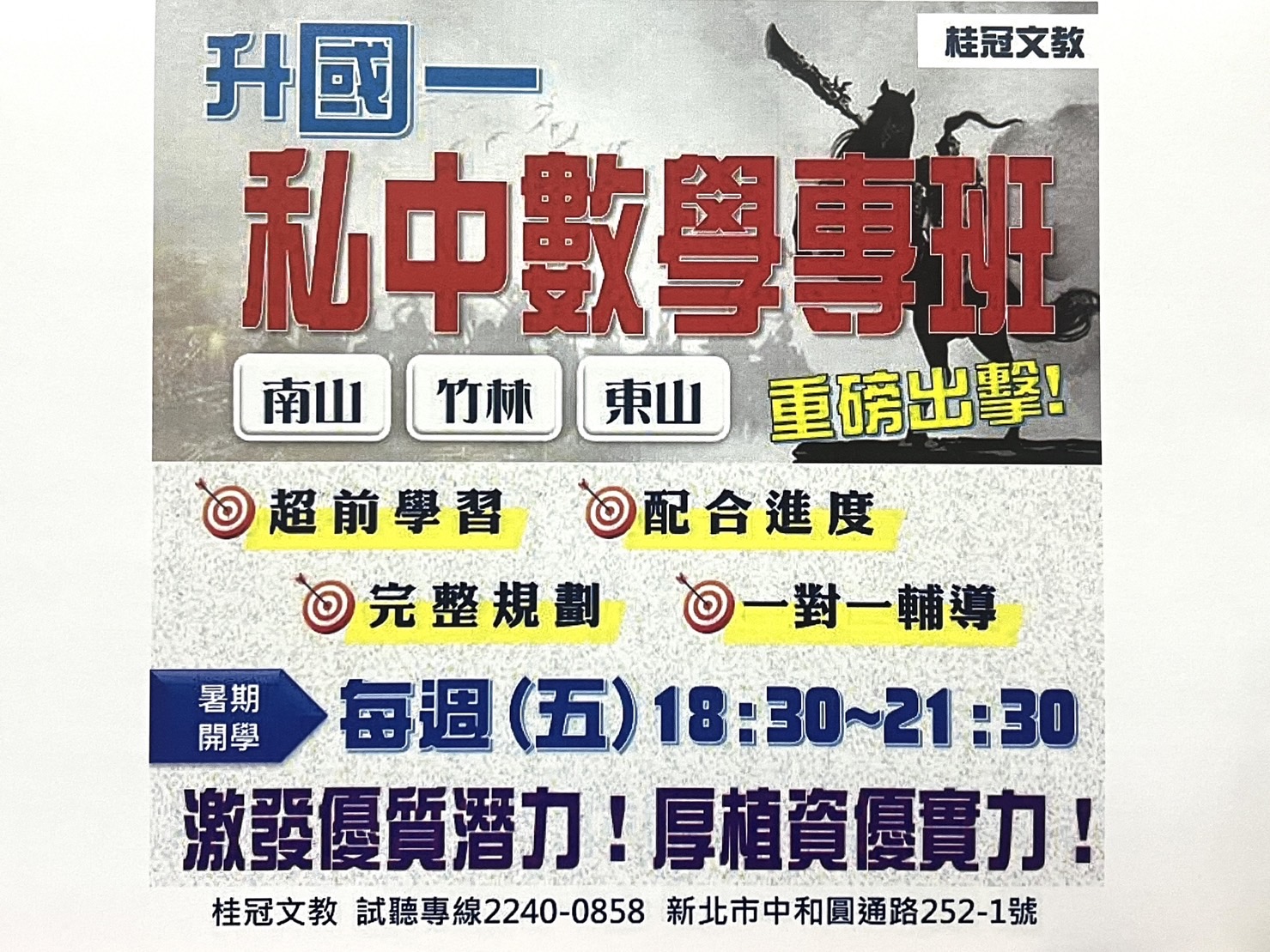 | 開課中班別 國中/高中考前衝刺班,國中國文班,國中數學班,國中社會班,國中自然(理化/生物/地球科學)班,國中英文班,國中課輔班 |